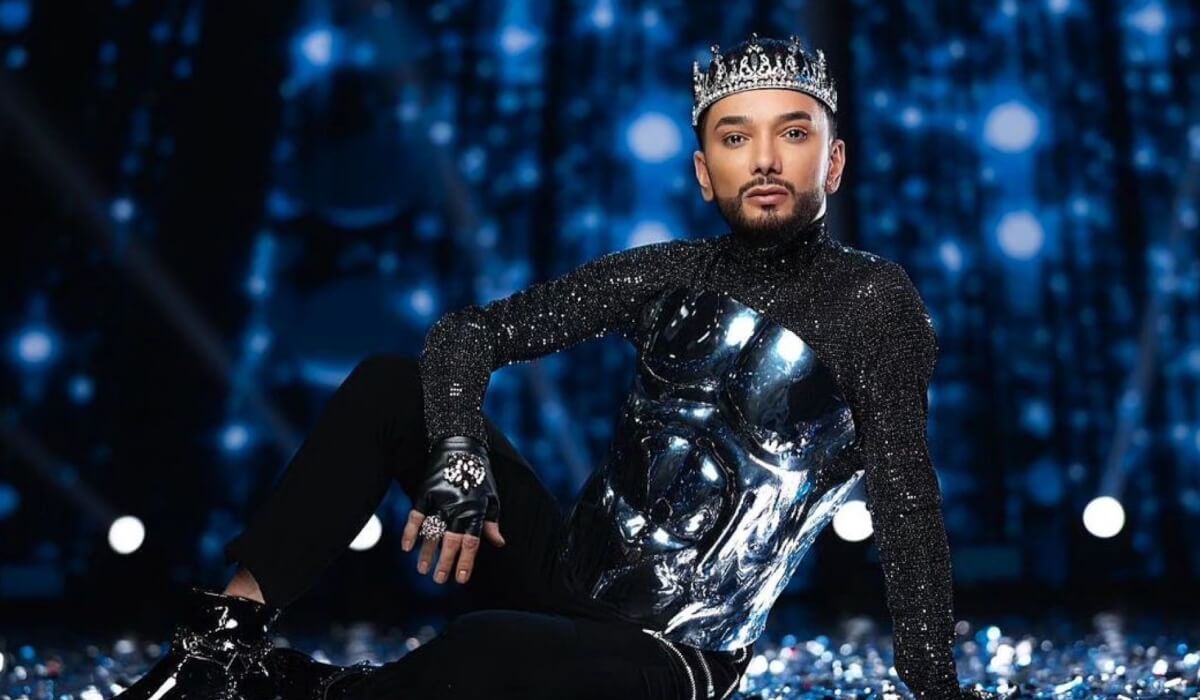 Ağayev gümüşü korsetini parıltılı koftası və tacı ilə kombinasiya edib.