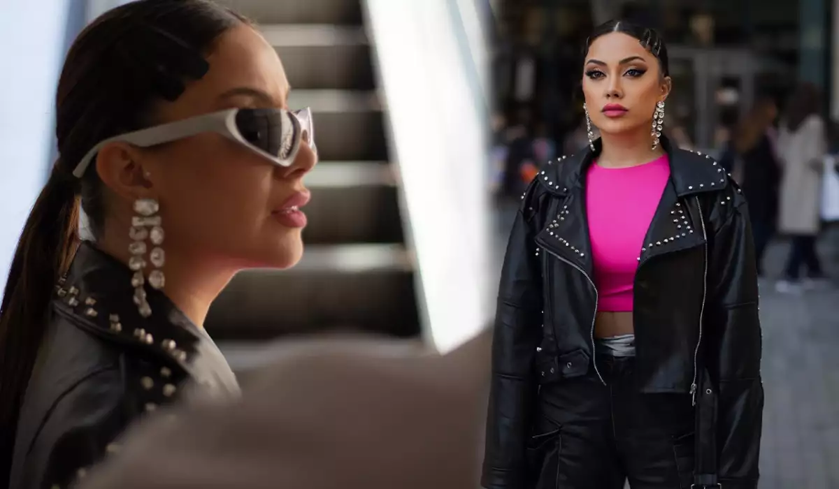 OLAY yazır ki, Ayan fərqli tərzi ilə kamera qarşısına keçib. O, qara və çəhrayı rəngdən ibarət “look”unu eynəyi ilə tamamlayıb.