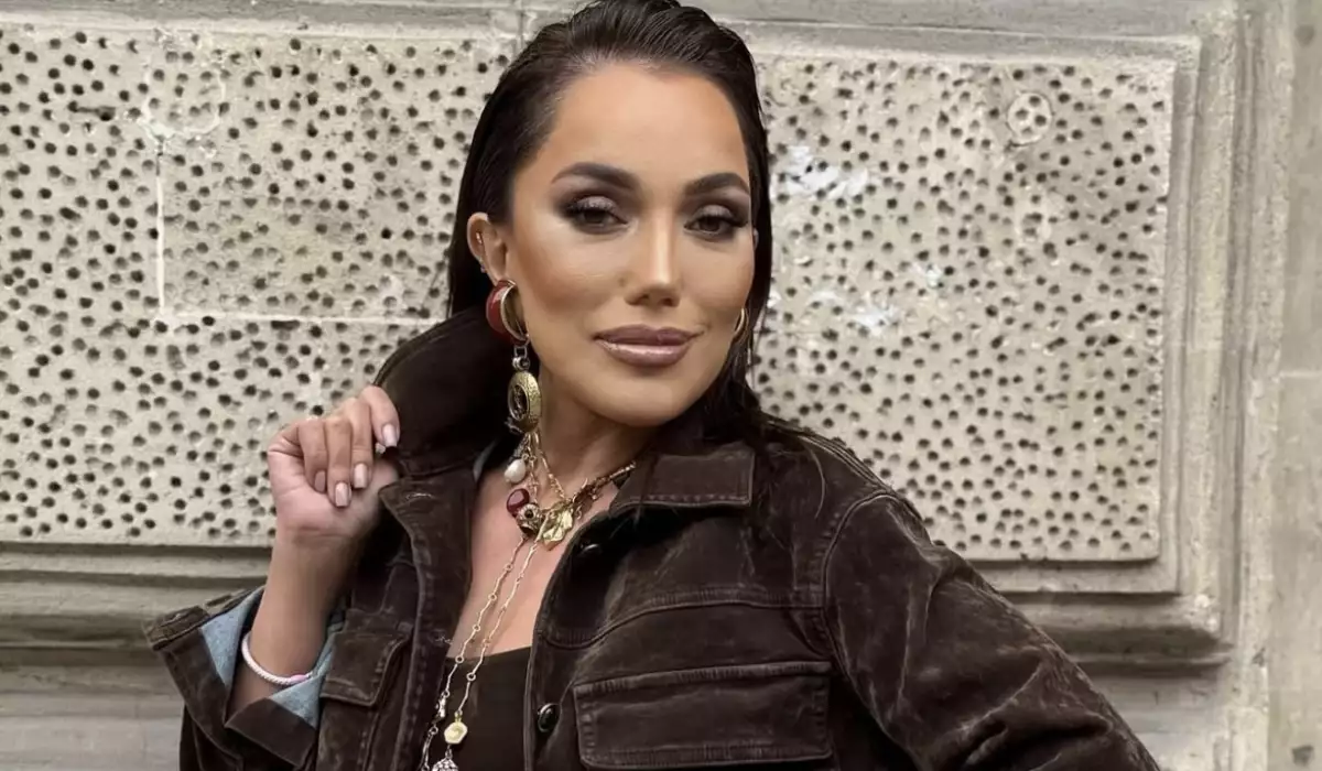 OLAY yazır ki, sənətçi qəhvəyi “crop” pencək və eyni rəngdə qısa ətəkdə obyektiv qarşısına keçib.