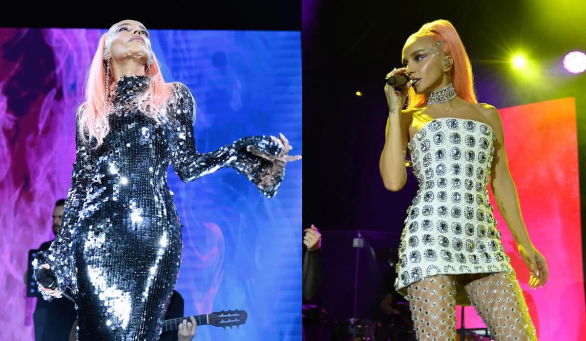 O, iki libas dəyişdirib. Gülşen bir qısa və bir uzun geyim seçib. Onun hər iki paltarı da parıltısı ilə diqqət çəkib.