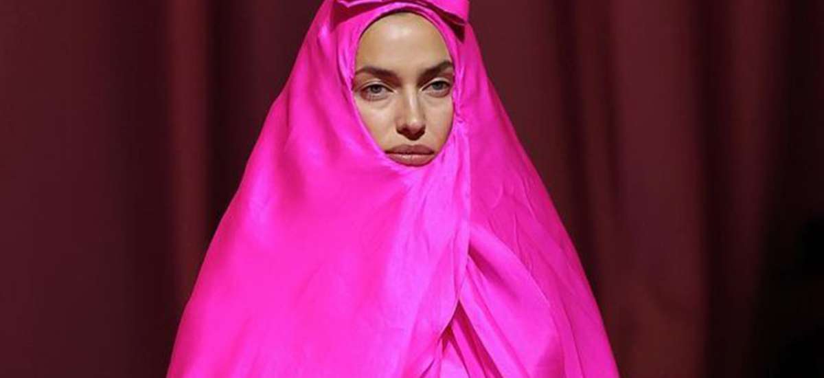 Məşhur model bu dəfə yalnız üzünü açıq qoyan çəhrayı paltarı ilə diqqət çəkib.