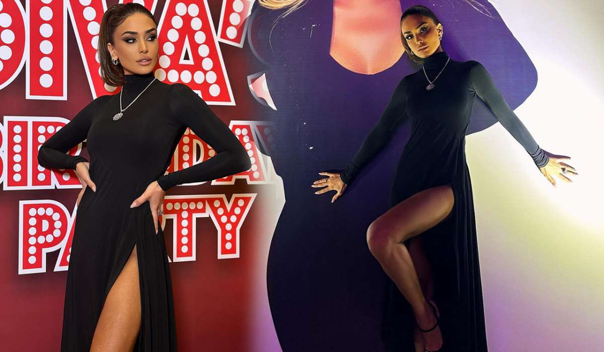 Pərvinin dərin ayaq dekoltesi gözdən yayınmayıb. O, kombinasiyasını zərif aksessuarlarla tamamlayıb.