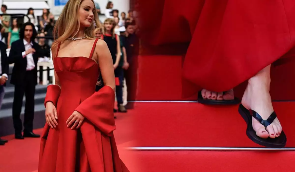 Belə ki, Cennifer dikdaban əvəzinə barmaqarası başmaq geyinib.