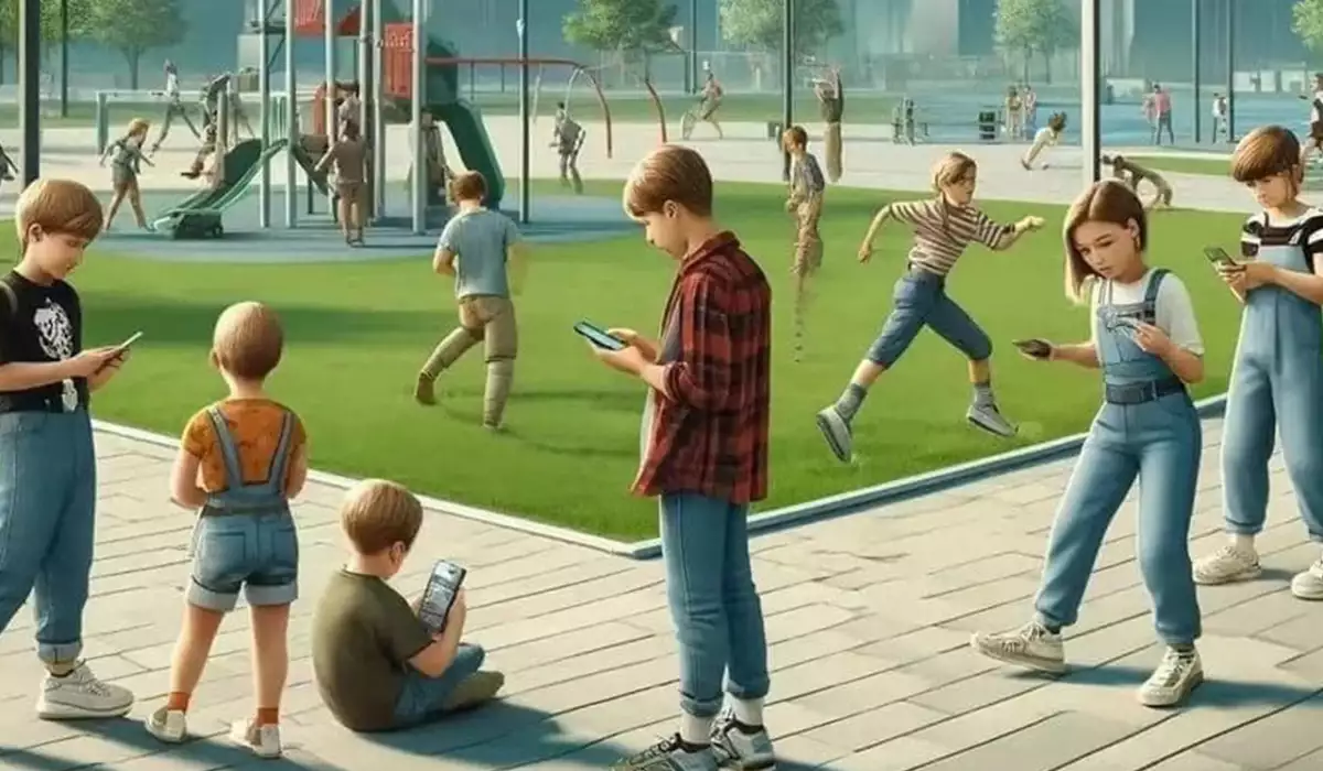 Süni intellektlə bu dəfə 1960-cı illərdən bu yana uşaqların cəmiyyətdən necə təcrid olub, smartfonlara yönəlməsi əks olunub.