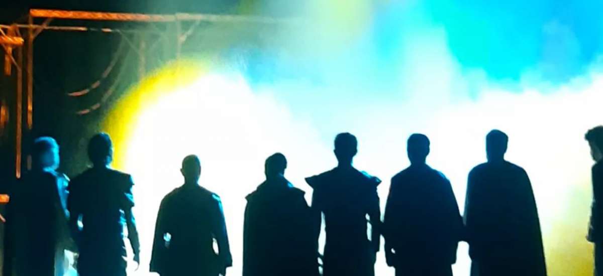 OLAY yazır ki, “İsgəndərə yeni namə” tamaşasının sonunda səhnədə mavi və sarı rəngdə işıqlar yanıb.