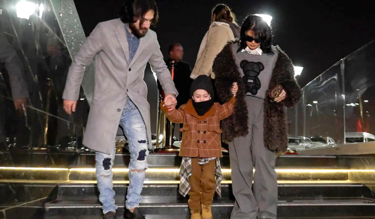 OLAY-ın kamerasına tuş gələn ifaçının yanında oğlu Zeyd Əli və keçmiş həyat yoldaşı, reper Dado (Səid Əliyev) olub.