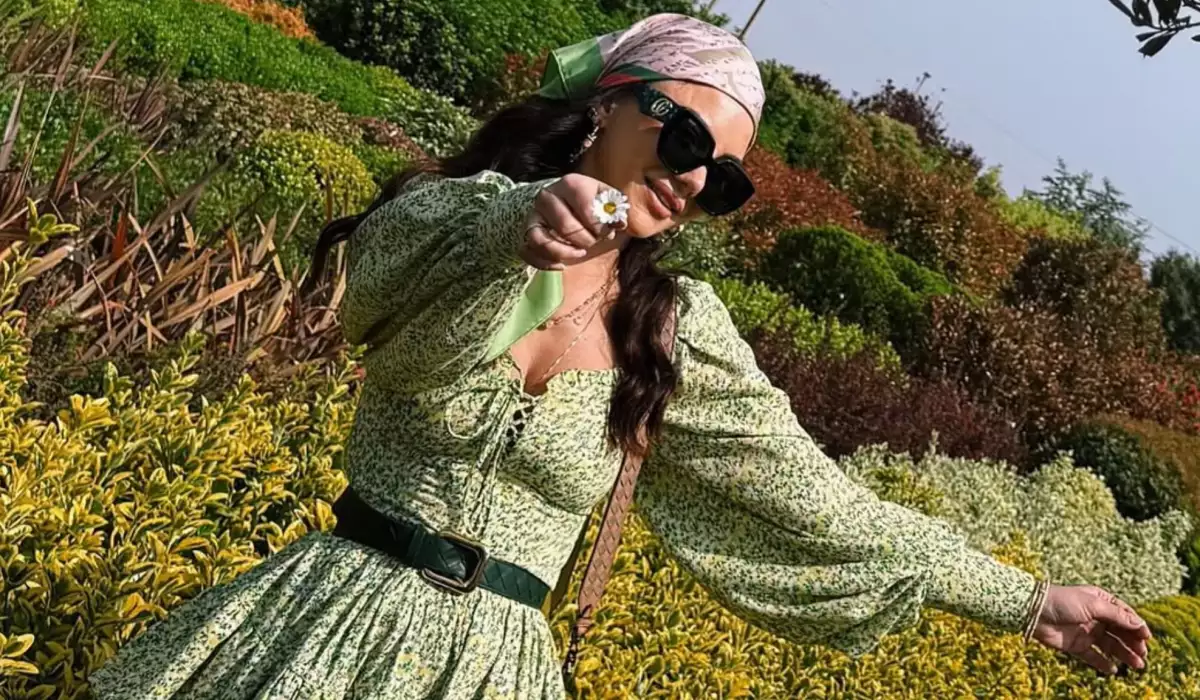 OLAY yazır ki, sənətçi yaşıl libasda fotolar çəkdirib.