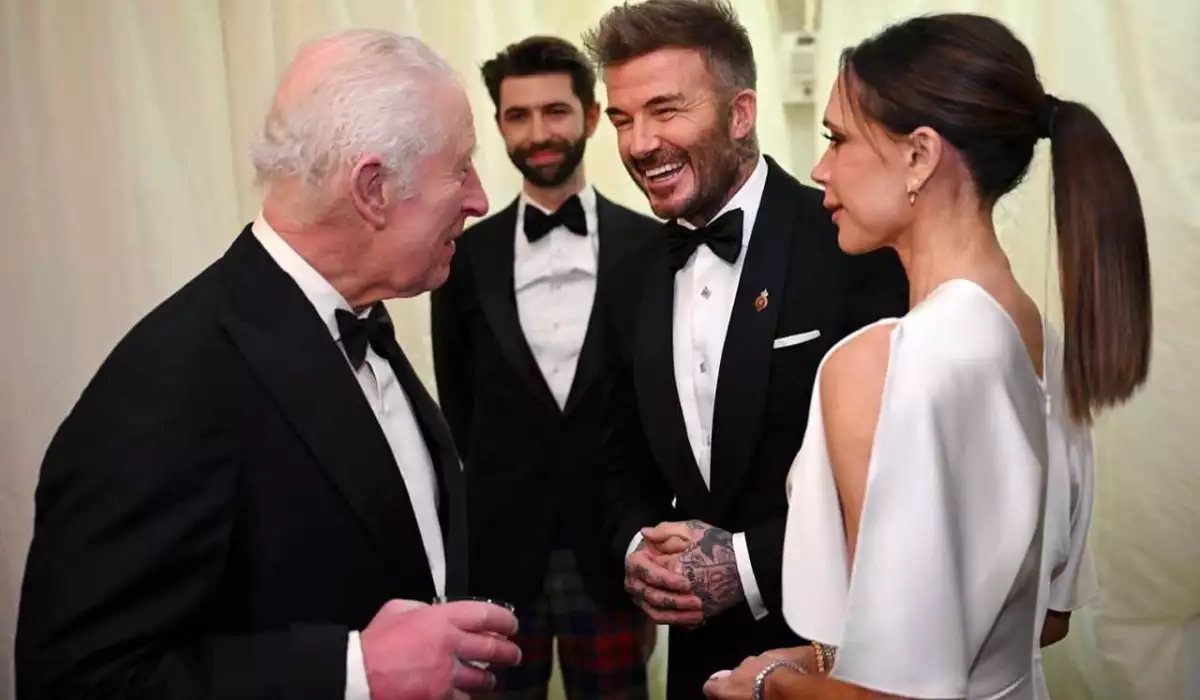 Dünyaca məşhur futbolçu Devid Bekham və xanımı Viktoriya Bekham Kral 3-cü Çarlz və kraliça Kamilla ilə bir araya gəlib.