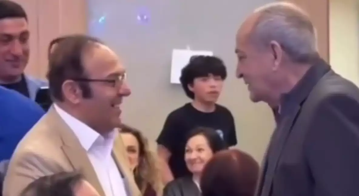 Kadrlarda Məmmədoğlunun Balayevlə Kaliforniyada keçirilən tədbirlərin birində səmimi şəkildə görüşməsi əks olunub.