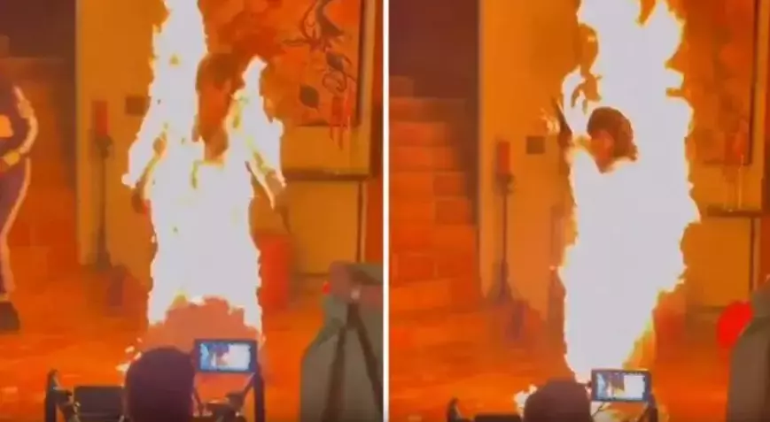 OLAY yazır ki, ssenariyə uyğun istifadə olunan alovların nəzarətdən çıxması nəticəsində məşhur ulduzun paltarı bir anda alışıb. Setdəki yanğınsöndürmə komandaları saniyələr içində müdaxilə edərək Perrini mümkün fəlakətdən xilas ediblə