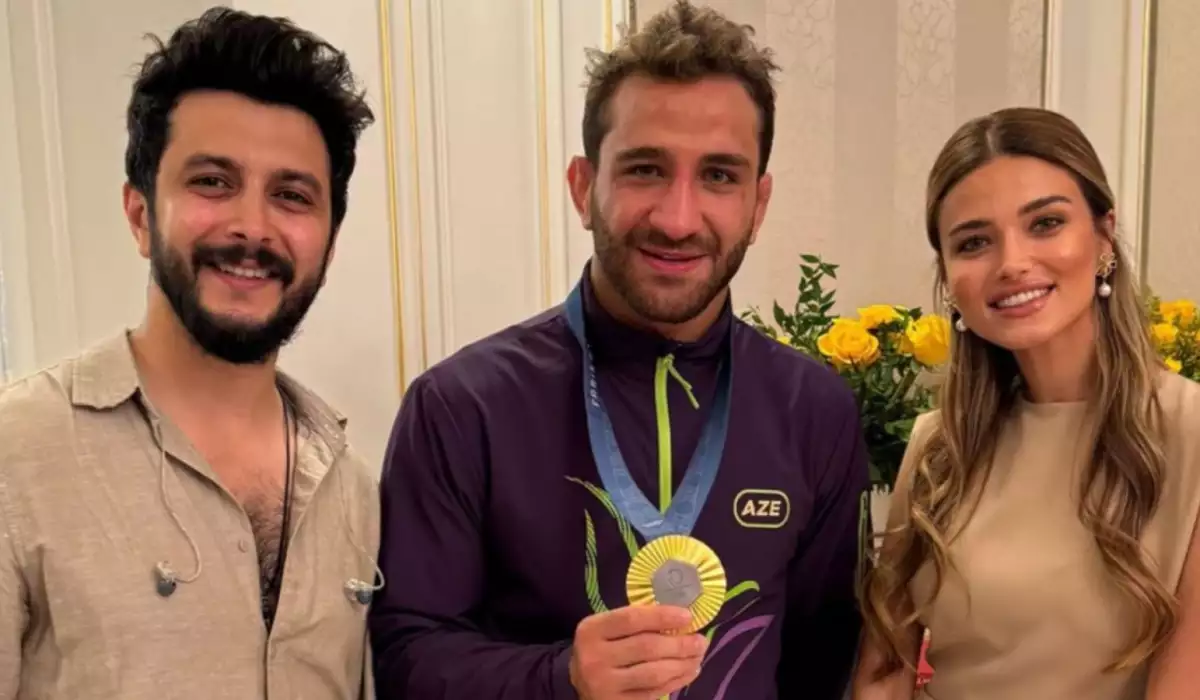 Müğənni Mərdan Kazımovla influenser xanımı Nəzrin Nəcəfova Olimpiya çempionu Hidayə Heydərovla bir araya gəlib.