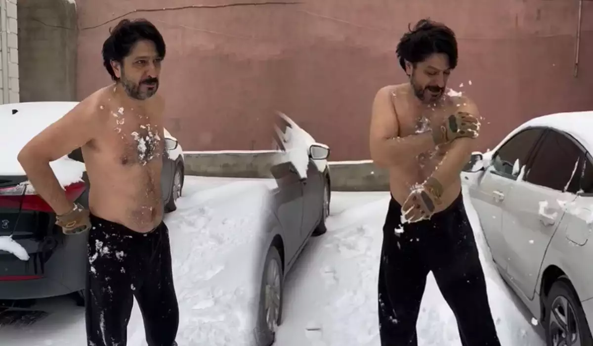 O, həyətdə soyunaraq qarla çimib. Mikayıloğlu bunun faydalı olduğunu bildirib.