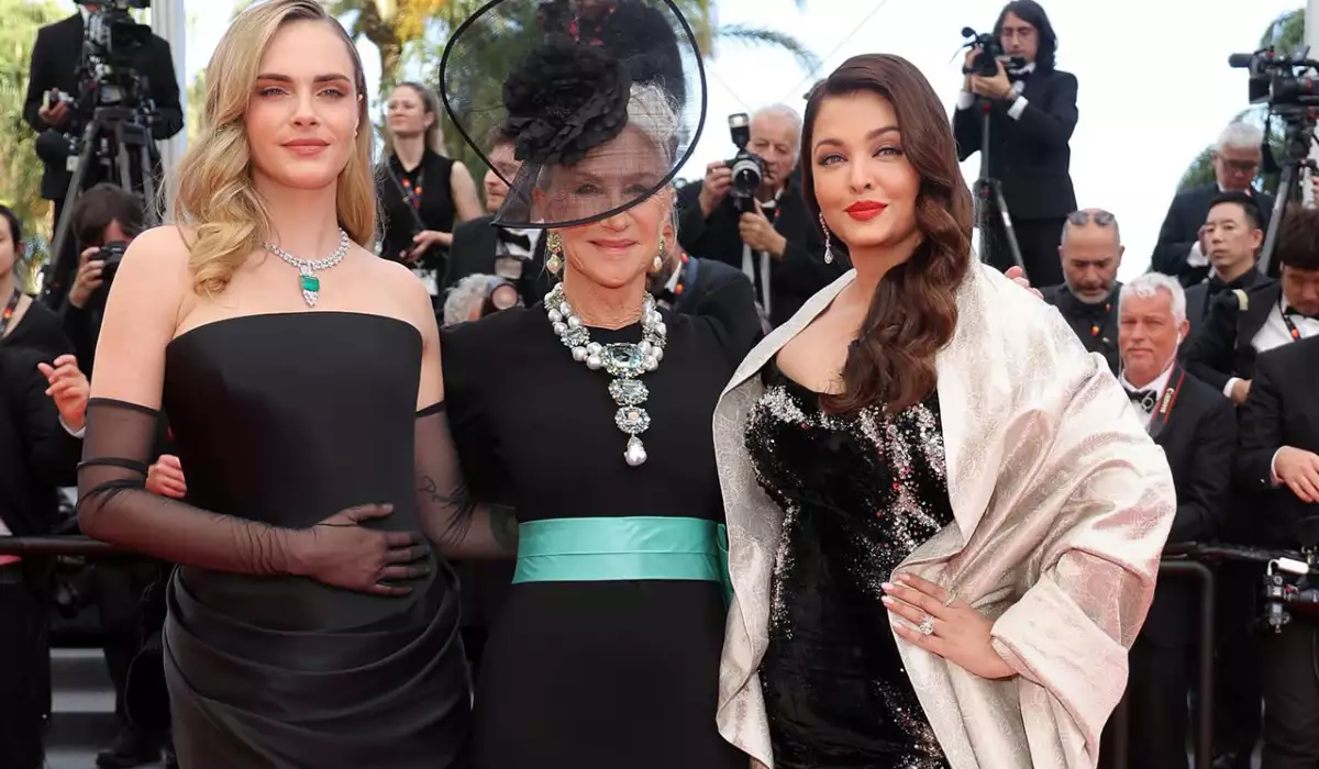 OLAY yazır ki, bu gün qırmızı xalıda Kara Delevin, Aişvarya Ray və Helen Mirren bir araya gəlib.