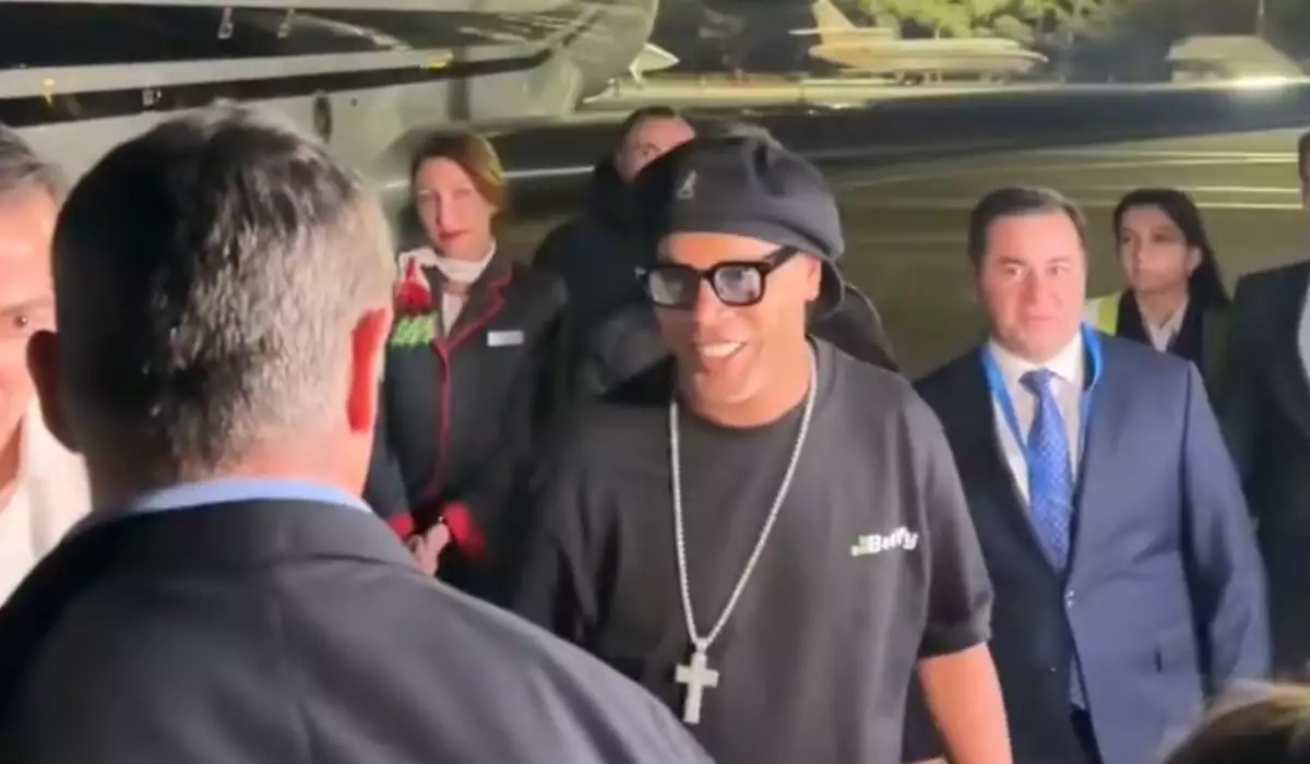 Dünyaca məşhur futbolçu Ronaldinyo Bakıya gəlib.