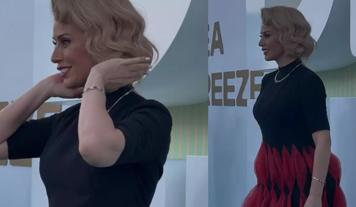 Saç düzümü və obrazı ilə diqqət çəkən Roza kameralara pozalar verib.