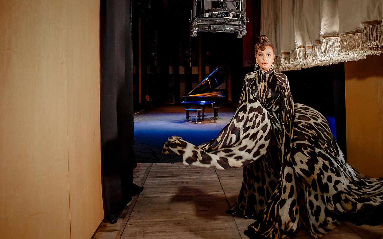 Sənətçi bu dəfə leopard tərzi ilə kameralar önünə keçib. Tanınmış dizayner Orxan Sultan fotosessiya üçün xüsusi geyim hazırlayıb. O, dünyaca məşhur “İv Sen-Loran” markasına müraciət edib. İncə ipək parçadan, gözoxşayan detalları ilə zəngin olan geyim maraqla qarşılanılıb.