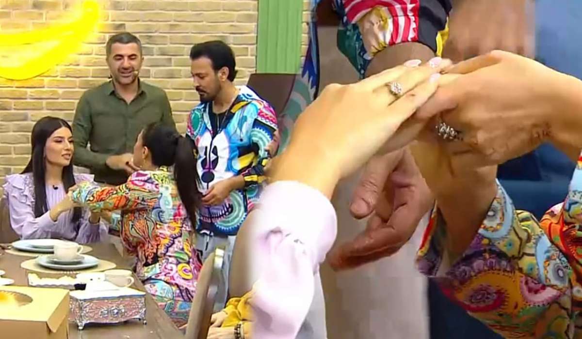 Müğənni Aynur Dadaşova brilliant üzüyünü aparıcı Günay Baxşəliyevaya hədiyyə edib.
